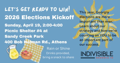 **This year, Georgia elections are more important than ever.** Indivisible National has labeled Georgia a “Battleground State,” pledging extra attention and support for our work in turning out voters for candidates who share our values.