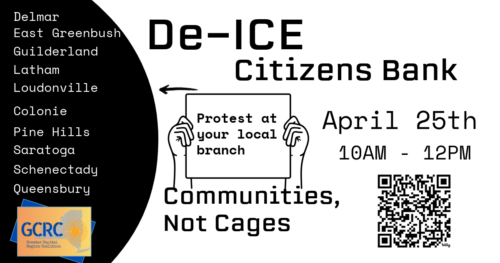 We have organized protests at Citizens Bank branches in Albany County, Rensselaer County, and Schenectady County.