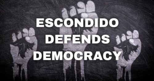Defend Democracy protest has moved to Thursdays, 3:00 pm – 4:30 pm or for as long as you can stay, at the intersection of Felicita and Centre City Parkway in Escondido, CA.