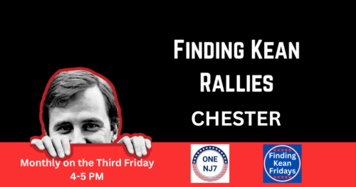 FINDING KEAN FRIDAY RALLY — 4:00-5:00 pm every 3rd Friday of the month — in Chester along Rt. 206 near intersection with Rt. 24 — park in ShopRite lot (near the road by Panera) to demand that Tom Kean, Jr. hold an in-person town hall with CD-7 constituents.