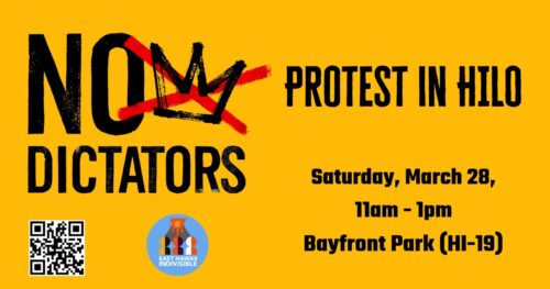 Join us on the makai side of Hilo Bay Front Park to tell this regime, We Don’t believe in Dictators, We say no to Tyrants, and we demand the return to the rule of Law. We Demand ICE out of Minnesota, and Stop the prison building.