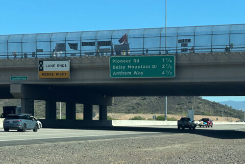 Please plan to arrive by **8:45 AM at the Chili’s parking lot at 34710 N North Valley Parkway, Phoenix, AZ 85086**. We’ll head up together to the overpass for a prompt **9:00 AM start**. There will be cars to bring you to and from the overpass if you don’t want to make the walk. The rally wraps up at **11:00 AM**.