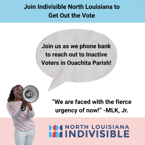 Get Out the Vote in North Louisiana. We are phone banking to reach inactive voters across Ouachita Parish. A phone bank link will be provided upon joining this group and you can take action on your own anytime until April 25th.