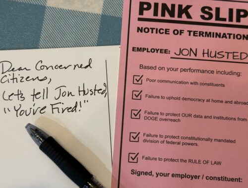 WHAT: Pink Slip 4 Jon Husted-Postcard Writing in support of Sherrod Brown