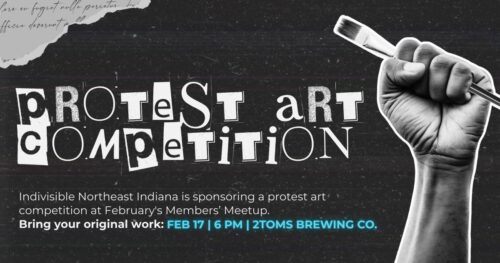 Indivisible Northeast Indiana is sponsoring a protest art contest — and we want to see what you have to say at our next Members’ Meetup. ✊🖌️It’s called: **“The Medium Is the Message: Protesting Through Art.”**