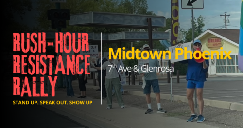 📣 [Rush Hour Resistance Rally](https://rhrr.us) began with a clear idea: **neighbors, gathering peacefully and regularly on busy nearby streets, could remind our communities that democracy is essential and that silence is unacceptable.** Over the last year, RhRR expanded from a handful of participants to multiple locations across the Valley, reaching thousands of pedestrians and motorists each week. This momentum is significant, as is the duty it brings.