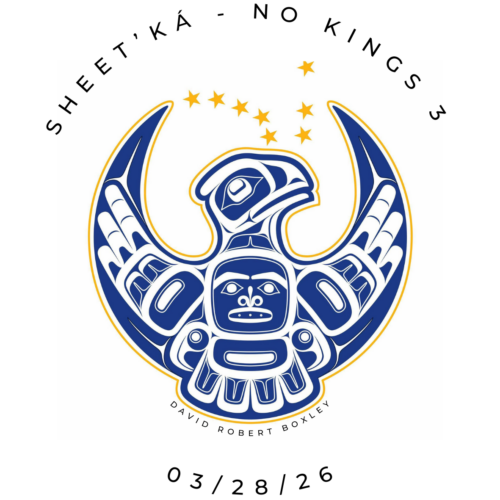 Join us for No Kings 3, a family-friendly, joyful, and non-violent but powerful display of the things we treasure most in Sheet’ká. We will march, sing, listen, share, and learn. We will be fundraising for ACLU Alaska, Minnesota Mutual Aid, and local youth programs through donations for limited-edition pins and stickers featuring the Ptarmigan Rebel design by Tsimshian artist David Robert Boxley.