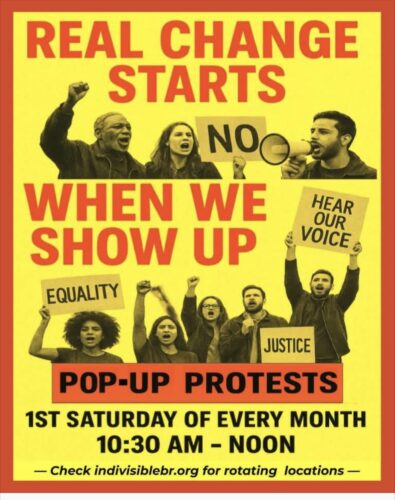 Let’s see if we can beat that number. We will gather at the corner of Perkins and Kenilworth, at The BREC Park-the same spot where we meet every Tuesday for Honk. Starting time, 10:30 AM. Bring a beautiful sign, bottle of water, and a chair if you would like.